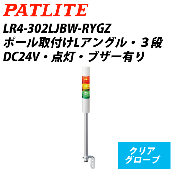 ●メーカー: パトライト ●商品名: LRシリーズ LED小型積層信号灯 ●型番: LR4-302LJBW-RYGZ ●定格電圧: DC24V ●段数: 3段 ●表示灯外径: Φ40 ●信号灯色: 赤黄緑 ●グローブ色:クリアグローブ ●取付方式: ポール取付Lアングル ●動作仕様: 点灯・点滅・ブザー有り